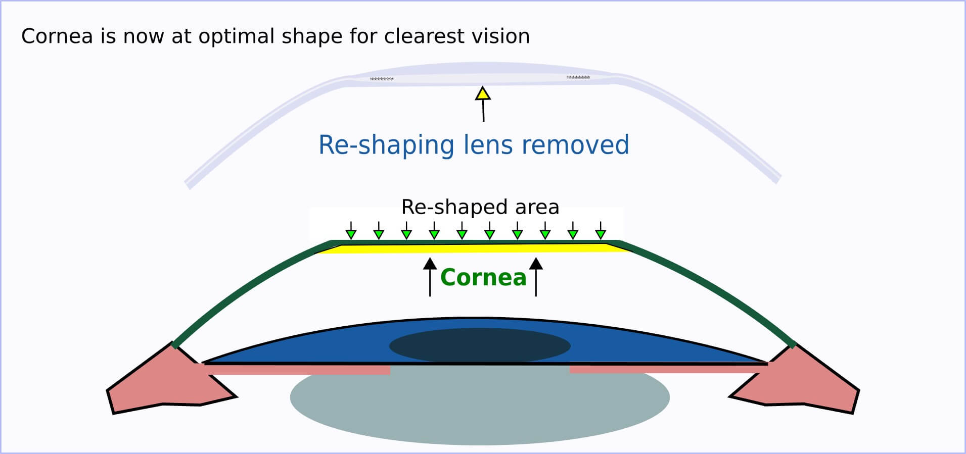 - When we do determine the optimal re-shaping lens, we have you start your overnight wear, educate you in the proper insertion, removal and care of your lenses and begin monitoring the changes made to your vision over the following weeks.